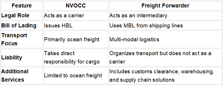 Both NVOCCs and freight forwarders are vital players in global trade. While NVOCCs focus on ocean freight and act as carriers, freight forwarders provide end-to-end logistics solutions that cover various transport modes. Understanding their differences allows businesses to optimize shipping strategies and improve supply chain efficiency.