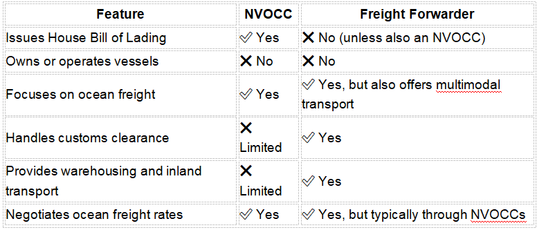 However, NVOCCs primarily focus on ocean freight. If you need multimodal transport (air, land, and sea) or comprehensive logistics solutions, a freight forwarder might be a better choice.