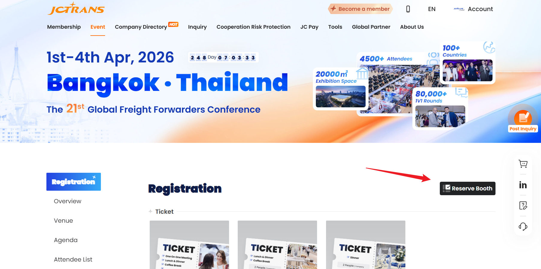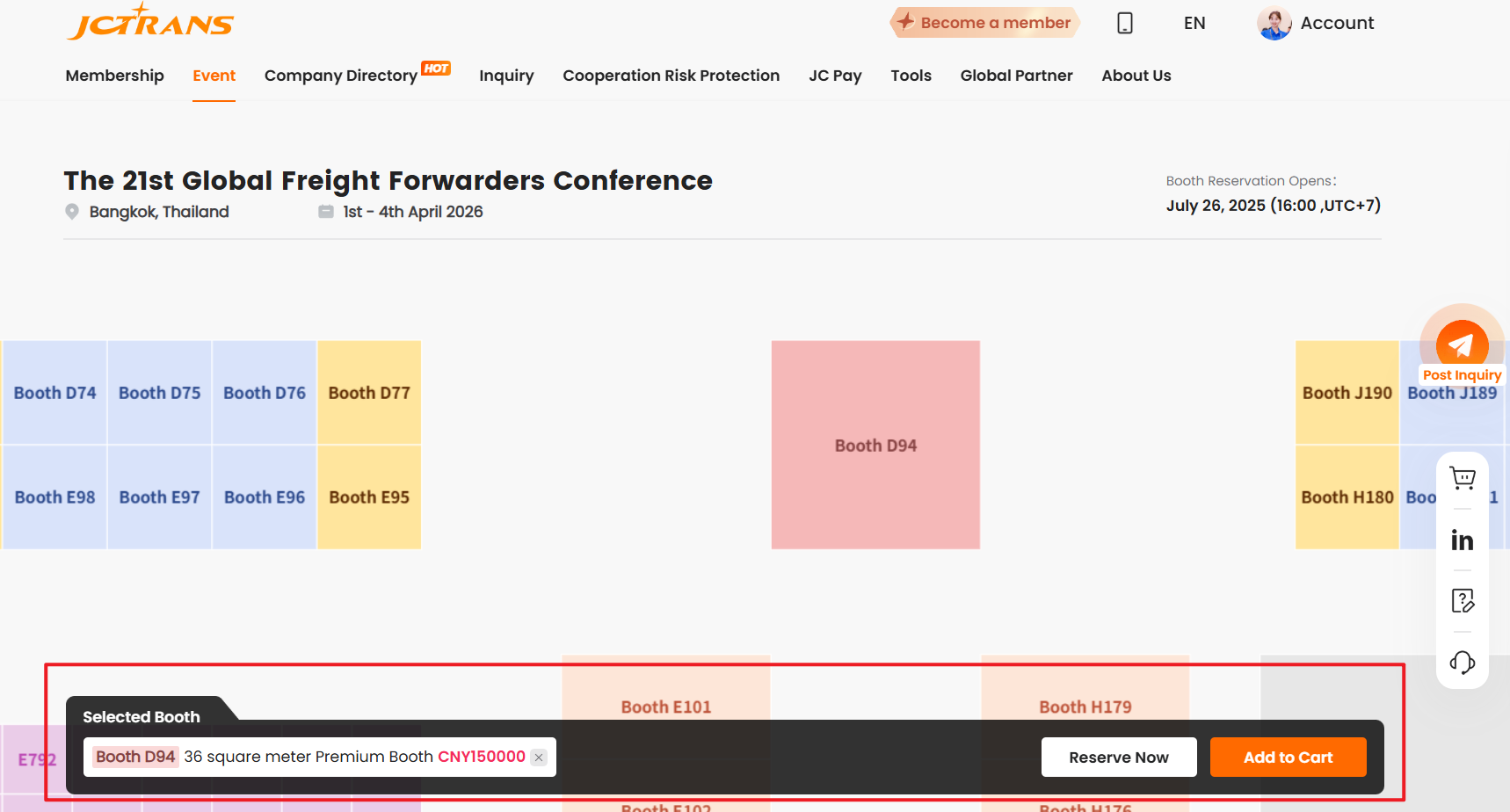Click "Reserve Booth" to open the booth plan page.